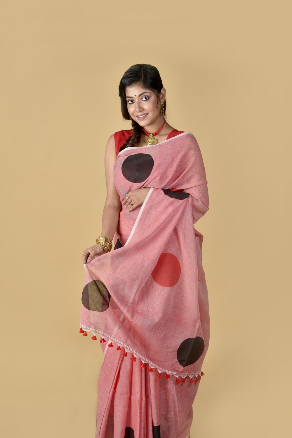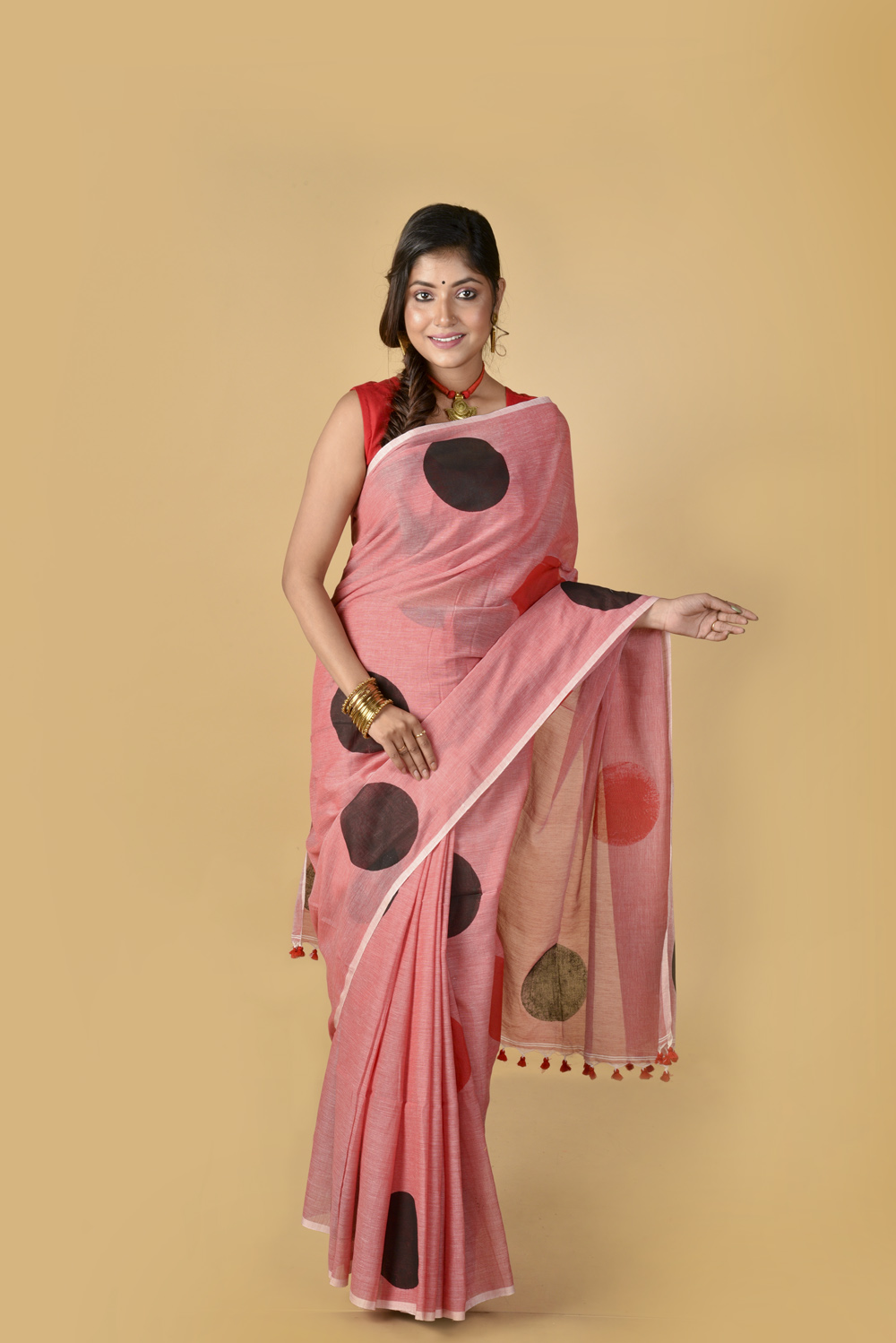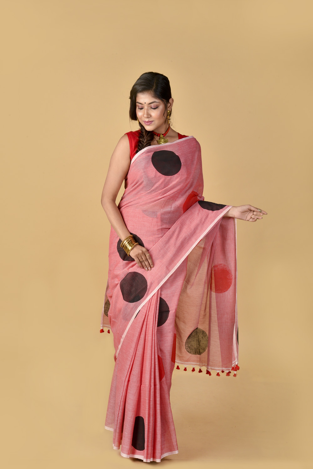 Red Black Polka Dots – Hand Block Printed Cotton Saree