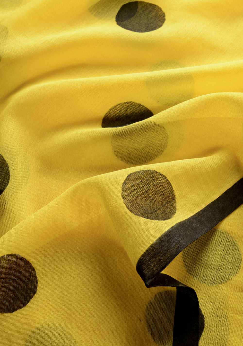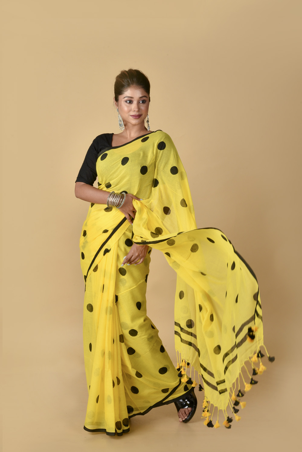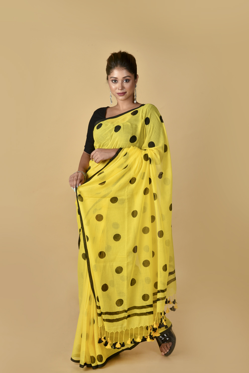Yellow Black Polka Dots – Hand Block Printed Cotton Saree